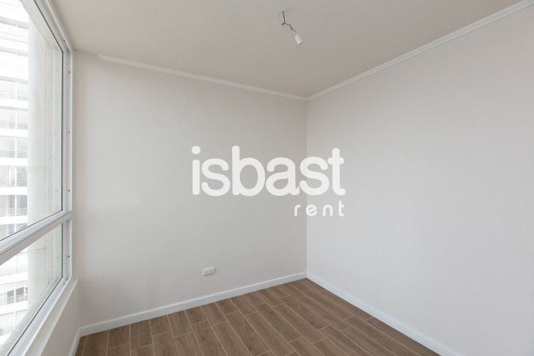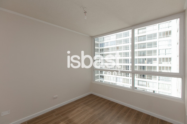 En cuanto a la distribución de la propiedad, esta tiene 2 dormitorios amplios, la habitación principal con walking closet y el segundo dormitorio con closet mediano, 1 baño ubicado en el espacio común del inmueble, conexión a lavadora y termo eléctrico en baño, living-comedor, cocina americana equipada con horno, encimera de 4 platos y campana. Además todo el departamento tiene piso de porcelanato. La unidad descrita incluye bodega, NO estacionamiento.